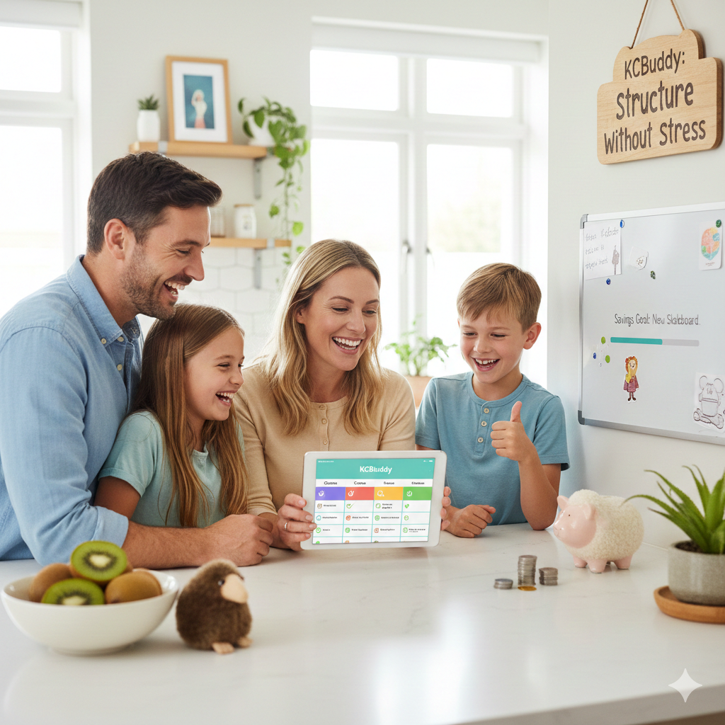 KCBuddy helps parents assign meaningful chores, approve photo proof, and reward progress toward savings goals. Built for busy Kiwi families who want structure without stress.
